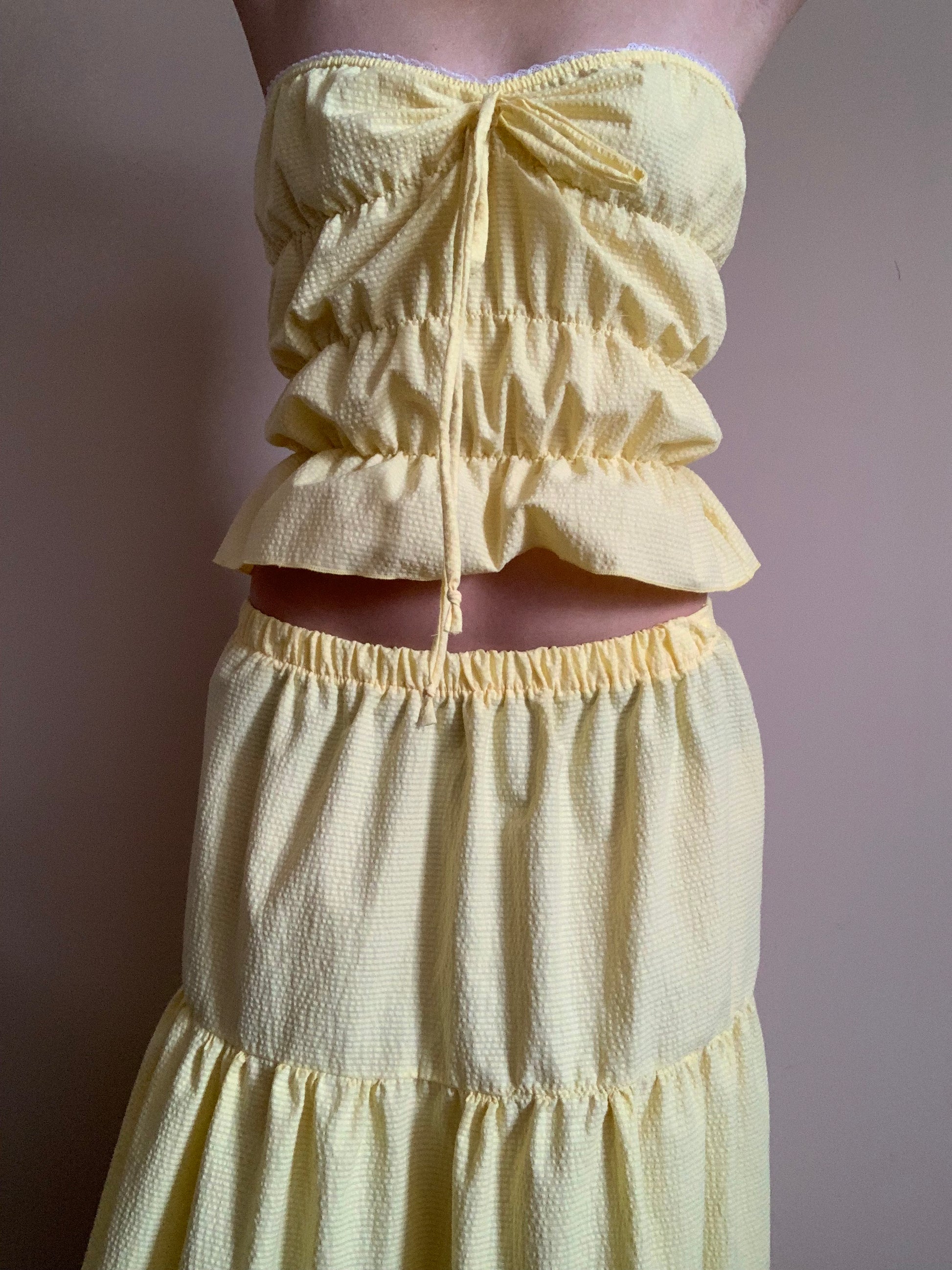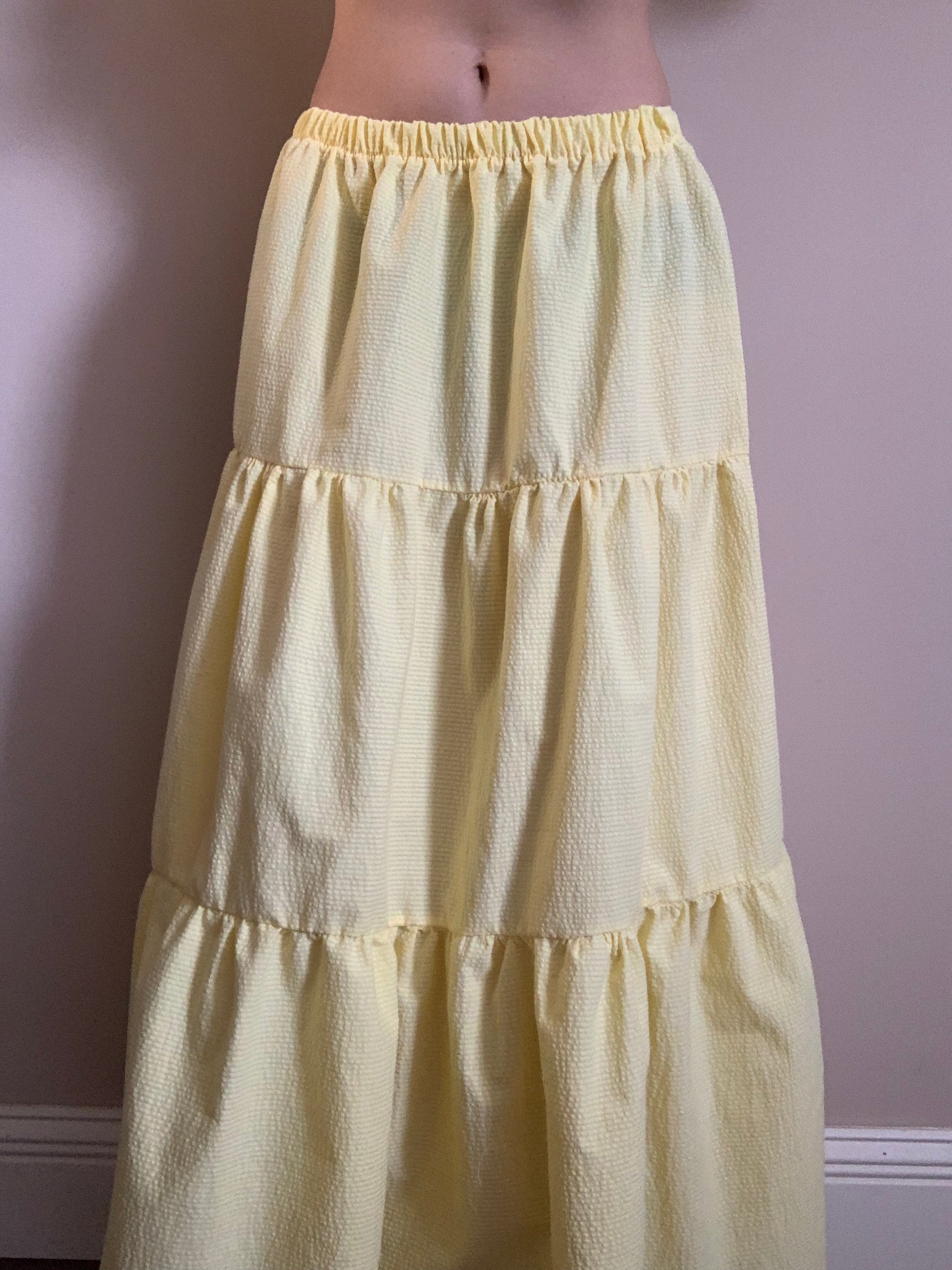 Lemon yellow 3 tier maxi skirt perfect for dressing up or down.
